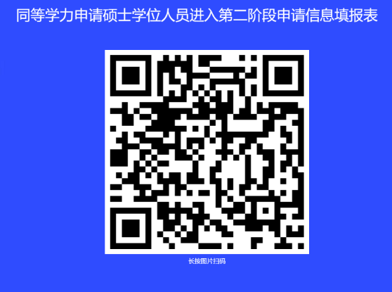1.申请人于9月9日前,通过问卷链接或扫描二维码填写完毕“同等学力申请硕士学位人员进入第二阶段申请信息填报表”。问卷链接//www.wjx.cn/vm/h4sqmIC.aspx。问卷二维码