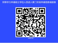 1.申请人于9月9日前,通过问卷链接或扫描二维码填写完毕“同等学力申请硕士学位人员进入第二阶段申请信息填报表”。问卷链接//www.wjx.cn/vm/h4sqmIC.aspx。问卷二维码
