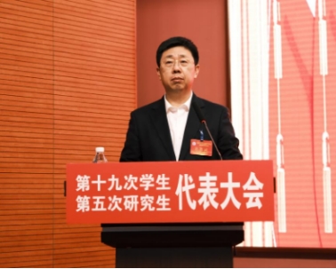 大会在雄壮的国歌声中开幕。第九届研究生会主席团执行主席公共卫生学院研究生张金龙代表第四届研究生委员会作了题为《担时代之责锤炼本领,扬青春之帆接续奋斗——为加快建设国内先进、国际知名的医科大学贡献青春智慧与力量》工作报告。
