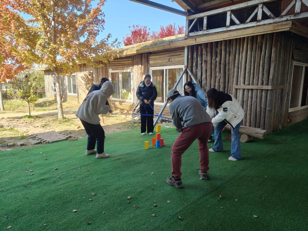 活动中,教职工们先后参与了采摘花生地瓜、真人CS、“公鸡下蛋”、合力搭建等多项趣味项目。大家在互动协作中增进了沟通与交流,感受到集体的温暖与活力。同时,教职工还漫步于牡丹小镇,欣赏秋日美景,参观特色稻草人展,在秋高气爽中放松身心、愉悦心情。
